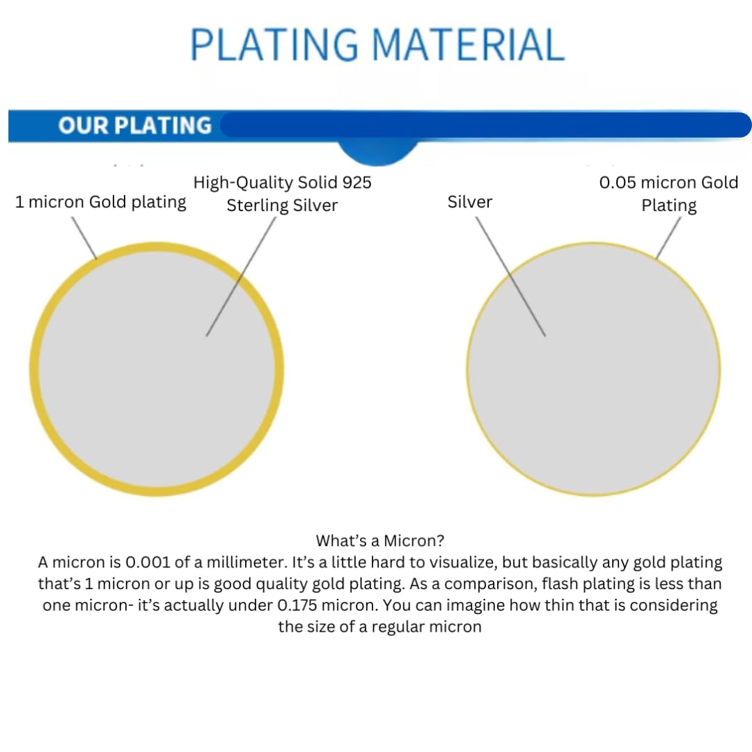 - High Quality Solid 925 Sterling Silver. One-micron 18K Gold Finish. Our thick layer of 18k solid gold on sterling silver means it will last longer.