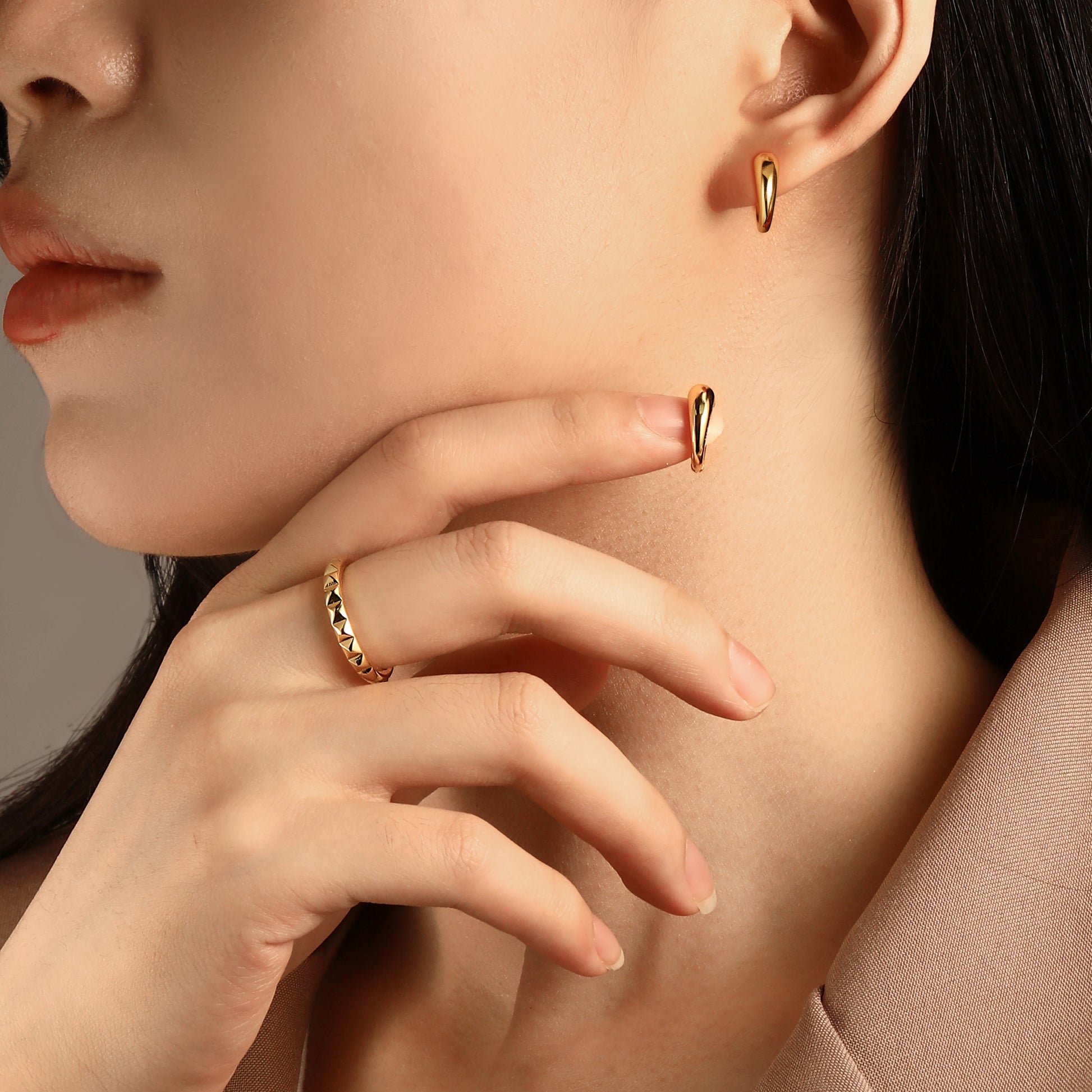 Bold yet timeless, our Dome Hoops add a touch of chunky elegance to any look. Perfect on their own or styled with an ear cuff for extra flair.