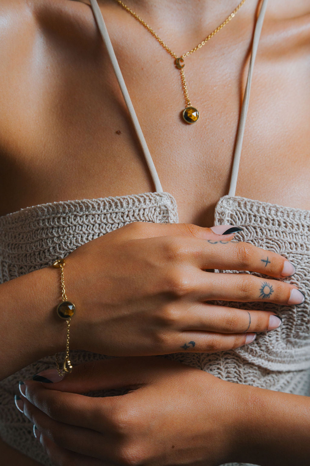 Kim Beautiful tiger's eye bracelet to go along with matching necklace.