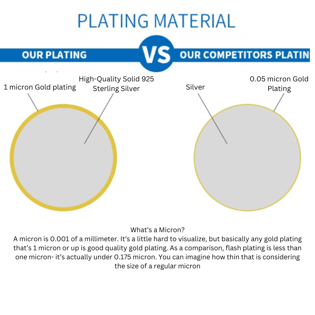 High Quality Solid 925 Sterling Silver. One-micron 18K Gold Finish. Our thick layer of 18k Solid gold on sterling silver means it will last longer.